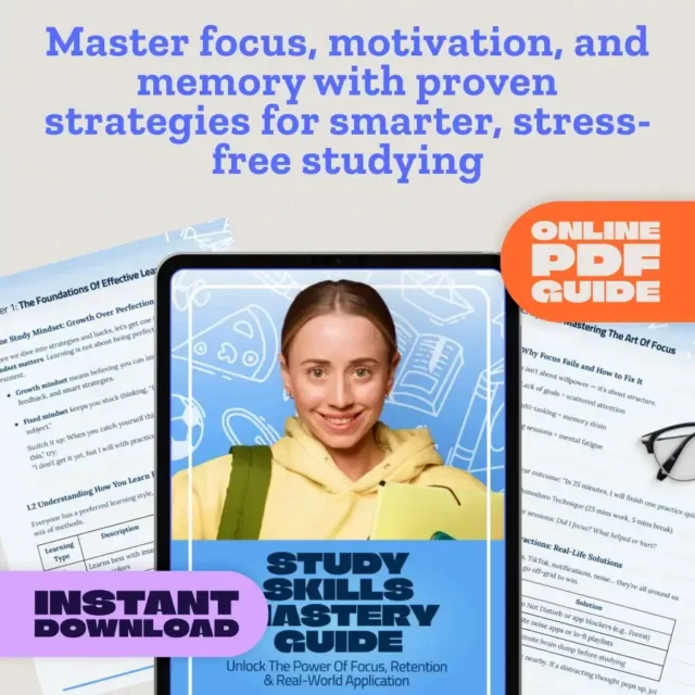 Download the Study Skills Mastery Guide now and turn studying into a skill you can truly master—for school, work, or life.